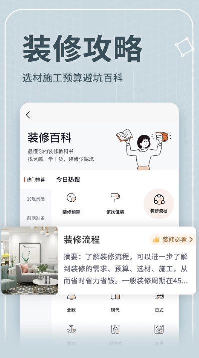 住小家主打真实装修案例展示,是寻找设计灵感的理想选择。其“案例库”汇集超百万张实景拍摄图片,按照户型、面积和装修风格进行分类检索,例如“80平米两居室北欧风”或“120平米三居室新中式”。点击任一案例可查看各区域细节,包括客厅沙发配色、卧室窗帘样式,并附带业主的设计思路分享,如“封闭阳台改造成书房,增加收纳空间”等实用经验。
