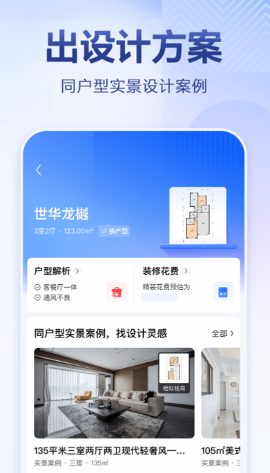 十分专业的家装设计平台,囊括了水电、墙地、家具家电等,在确定好户型之后可以直接将相关的组件和素材拖动进去完成,还能够一键导入和美化。在这里可以看到很多现成的案例,可以参考一下。