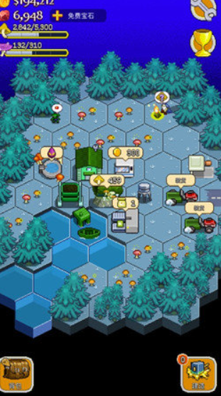 该游戏很好的融合一些像素类型的,让你玩起来会有慢慢的怀旧感。在这个茂密的森林里面,你既可以自由进行蘑菇的采摘,并培育各种各样的品种,也可以通过点击相同元素完成消除游戏,你还可以养成不同的蘑菇,看着蘑菇慢慢长成大的样子,你会感觉到非常的有成就感。