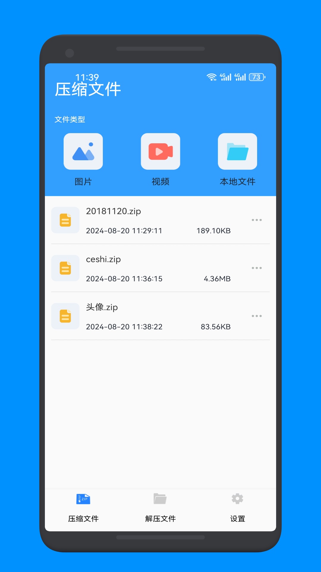 这款应用广受用户欢迎,支持从本地快速导入文件并进行解压操作。当手机中的照片或视频占用空间较大时,可通过压缩减小体积以便发送。此外,面对大量文件时,还可通过分类管理功能实现更有序的文件整理。