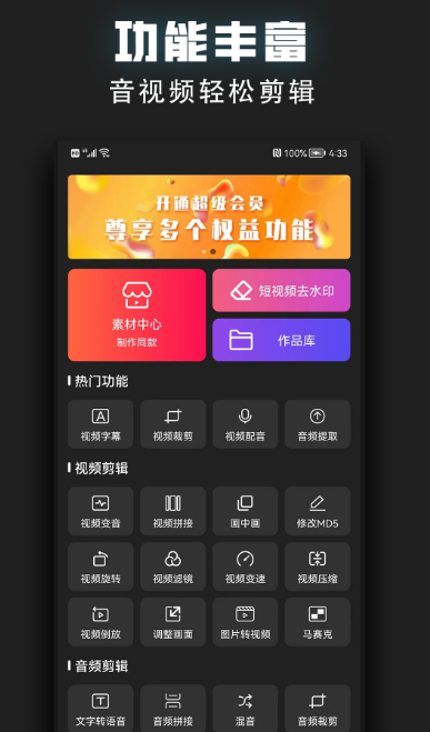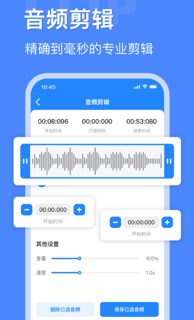 涵盖音频混合、拼接、提取等多项实用功能,支持高清录音及主流格式输出,如MP3等,适用于各类音频处理任务,随时随地完成高质量声音创作。