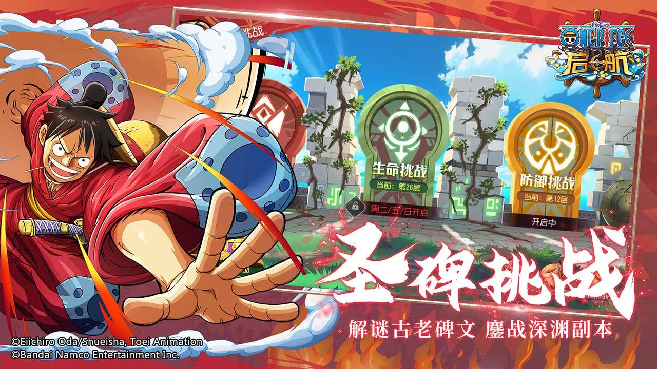 《航海王-启航》是一款以动漫《航海王》为题材的卡牌RPG游戏。游戏的画面风格忠实还原了《航海王》中的人物形象和世界观,动画人物的Q版造型给人一种亲切的感觉,场景设计则充满了热血和冒险的氛围。游戏中的战斗画面精彩纷呈,特效炫目,角色技能的释放令人印象深刻。除了基本的卡牌战斗系统,这款游戏还设计了丰富的PVE和PVP玩法,玩家可以在海上冒险、挑战强敌,还可以与其他玩家组队进行跨服竞技。
