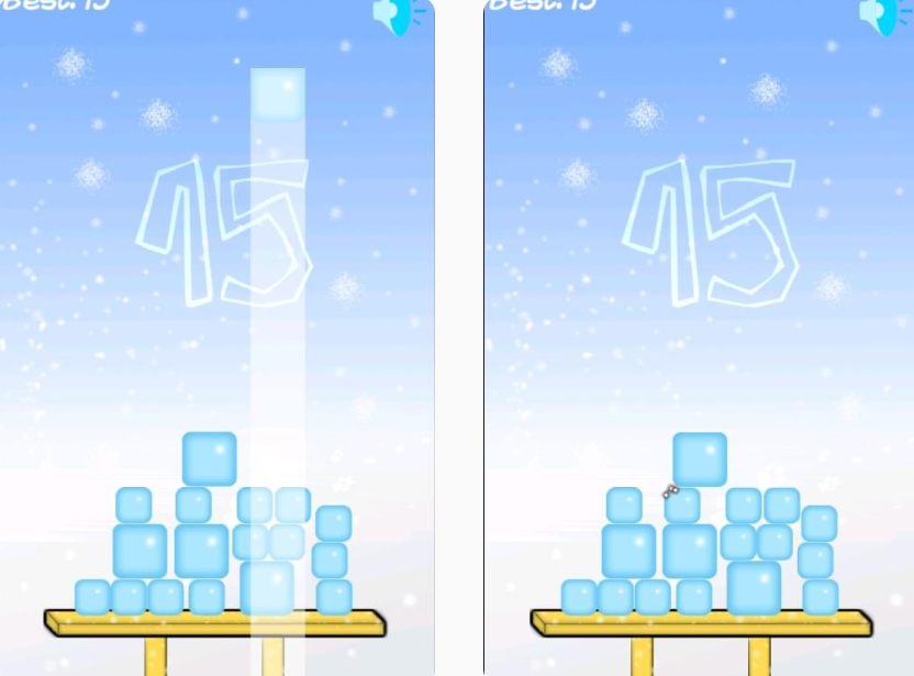 《堆冰块》是一款休闲益智类收集游戏,玩家需要移动手指控制掉落的冰块的未知,释放自己的手指让冰块掉落,不让冰块掉落到冰块的外面去,物理引擎拉满,所以你能够看到冰块在这里的各种姿势,快来挑战自己,堆出最高的冰块堆吧。