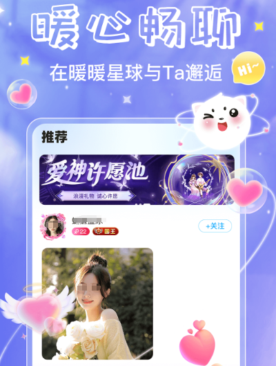 热门直播交友平台,拥有同城模式,点击之后可以观看到同城在线的好友以及主播,可共同pk互相聊天,作为优秀的交友软件,能够轻松找到属于你的另一半。