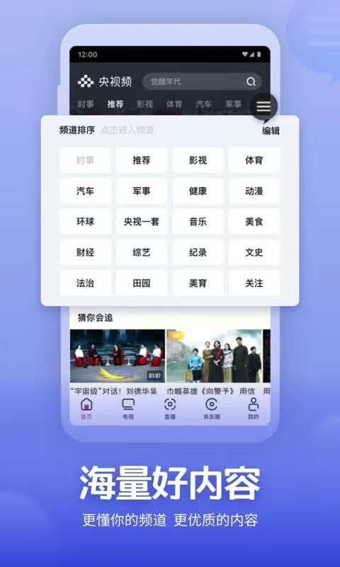 央视频这个软件。有众多的体育直播。提供优质的电誉目体育赛事,新闻资讯纪录片等。各种各样丰富的赛事热点,事件实时追踪。为用户提供更权威更准确的体育赛事内容。