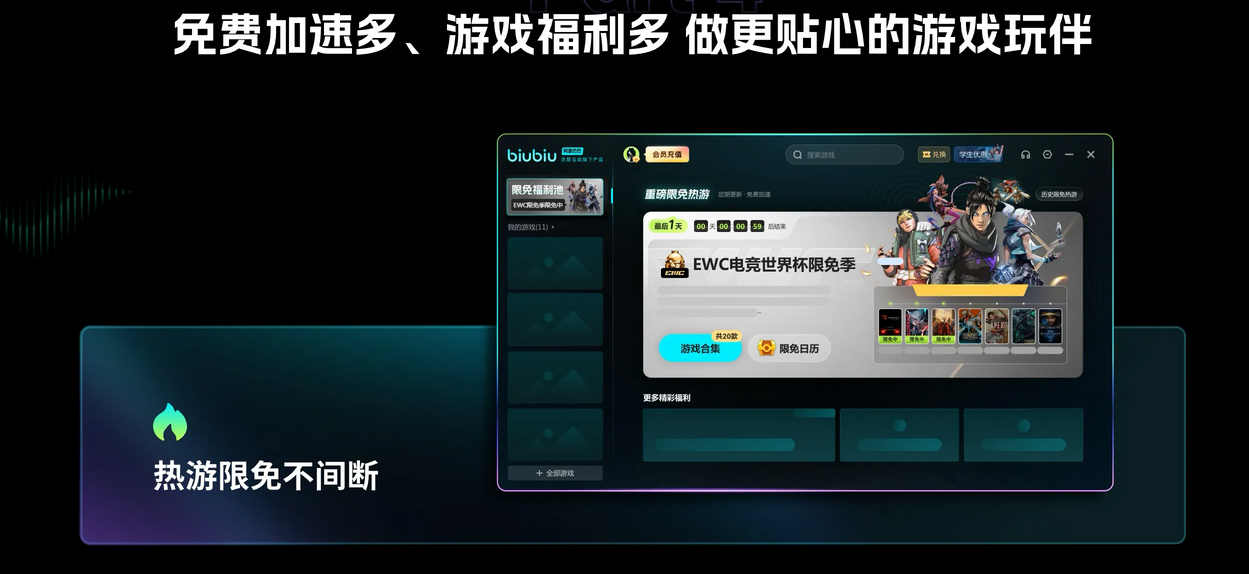 在服务覆盖层面,biubiu支持包括国服、国际服、美服、欧服在内的多个区域服务器,几乎涵盖市面上主流的热门游戏。无论是PC平台还是主流主机设备,只要游戏出现在列表中,即可实现一键加速,极大增强了跨平台用户的使用便利性。价格方面也极具吸引力,日均成本不足1元,若选择年费套餐还可享受更低单价。针对学生群体,biubiu还推出了专属优惠活动——通过学信网验证身份后,购买季卡或年卡不仅能享受折扣,还将获赠额外加速天数,进一步提升长期使用的经济性。