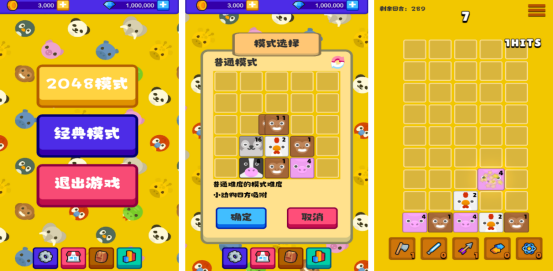 色彩缤纷的画面,从玩法上来看也和2048特别相似,只不过唯一不同的地方就是,此游戏用各种可爱的动物头像展现,开局后从上方掉落出不同的动物头像,你要合理规划,立即将这些动物的头像放在正确的位置上,只要4个相同的动物,紧紧地连接在一起,可快速消除获得相应的分数。