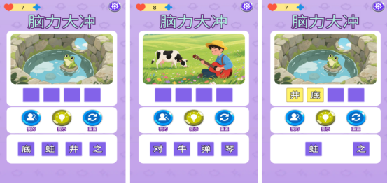 我国的文字文化拥有着深远的背景,现在很多游戏都是以文字为主要题材,而这款依旧也是如此,首先在开局之后会看到栩栩如生的图片,这些图片会利用先进的技术,渲染出特别真实的背景,将成语故事刻画的非常真实,在下方又会看到随机被打乱顺序的文字,你只要将这些文字按照正确的顺序填入进去,回答正确后,可解锁更高难度的关卡。