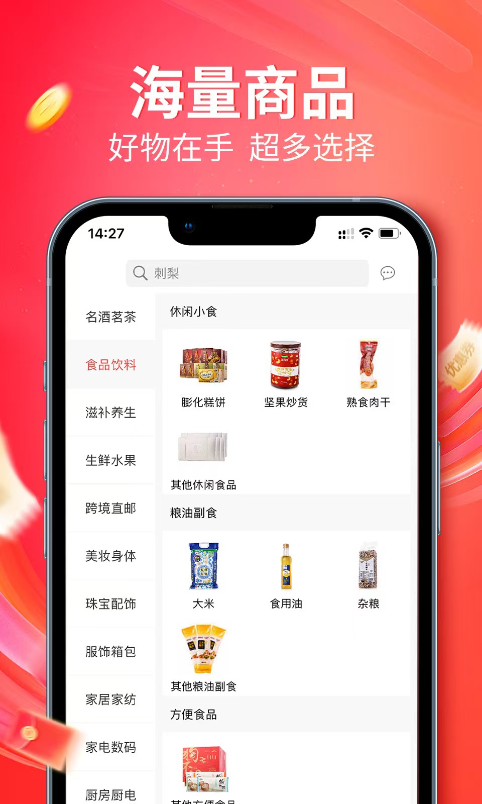 专注于为用户提供高性价比的日用品和食品等消耗类商品,平台经常发放补贴券和开展低价促销活动,有效降低家庭开支。在保障产品质量的前提下,力求价格优势,提升整体购物价值感。用户还可通过参与平台任务获取积分奖励,用于兑换实物商品或抵扣现金,进一步增强购物实惠度。