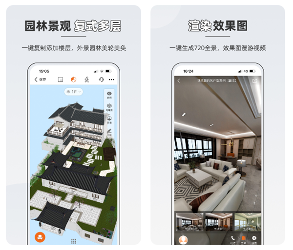 功能强大的一款设计工具,不仅是能够进行商品房屋的室内装修设计,更是可以完成别墅、户外园林的设计。软件的使用方法比较简单,可以导入二维户型图或者是通过手机摄像头扫描来生成场景建模,更是可以进行多楼层的绘制和添加。