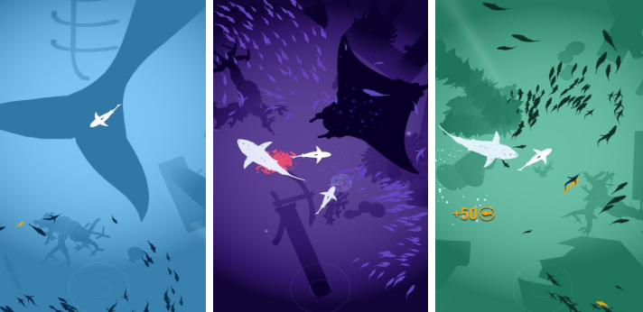 海底大猎杀刚开始只能操控小鱼在浅海游,周围全是比自己大的生物,得小心翼翼躲着金枪鱼,它游得特别快一追上就会把小鱼吞掉,只能偷偷吃水里的浮游生物,吃够了能量就能进化,从沙丁鱼变成三文鱼后游得更快了,还能冲刺躲开天敌,再进化成鲨鱼就能主动攻击其他鱼,一口能吞掉好几条小鱼。