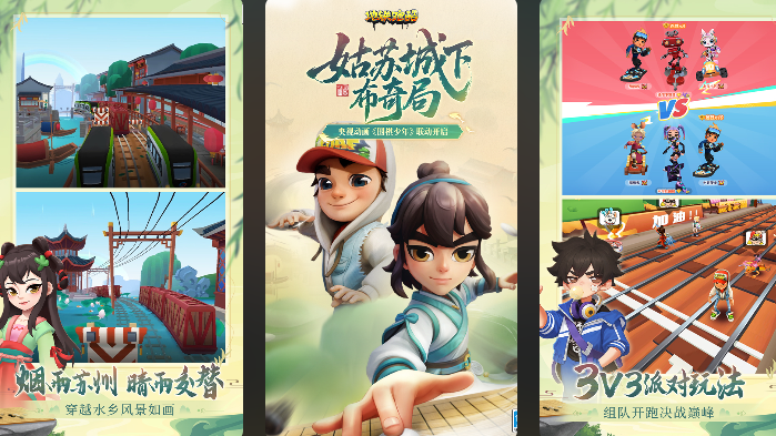 地铁跑酷的快节奏跑酷玩法很容易让人上瘾,玩家操控的角色在地铁轨道上奔跑,周围的场景一直在变化,有时候是穿梭在隧道里,有时候是跑在高架轨道上,火车、信号灯、路障这些障碍物会突然冒出来,考验的就是反应速度,游戏里的每日任务很有意思,完成任务能拿到钥匙,钥匙可以用来复活或者开启宝箱。