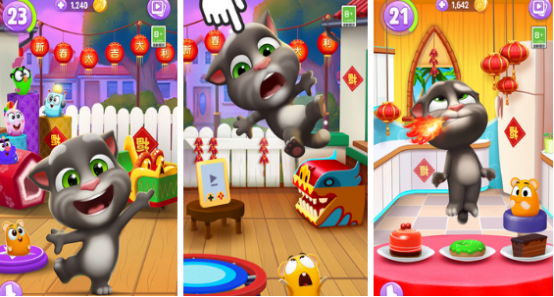 作为超级出色的特色ip,伴随着汤姆猫成长,最初的小猫咪是一个可爱的小宝贝,随着时间推移,与其互动,通过喂食购买服装自由装备的方式让汤姆猫变得更加黏人,最终成为帅小伙。以独特的互动和情感交流为主,玩家可化身成为充满爱心的小护士,给生病的小猫咪喂药打针还能够为其制作玩具,比如篮球、沙袋等。