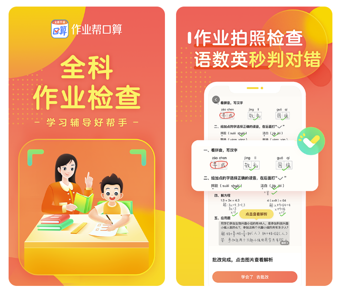 不仅能够通过这款软件学习到数学的相关内容,还能够通过这练习英语跟语文等各种相关学科。简单的设计让大家使用起来更加的方便顺手,软件还带有批阅识别的功能,写好的作业和试卷都是可以通过拍照的方式快速的检测,有任何的问题都会给你标记出来,长摁就会查询相应的知识点,可以说非常的专业了。