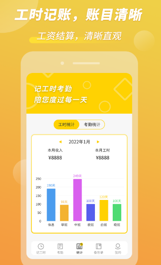 作为一款非常专业的计工资及考勤app,适用于众多打工族,小伙伴们根本就不需要担心加班考勤混乱的情况。这是一款专门为用户制定的加班考勤计算工资软件。每天都能记录加班考勤以及计件。每天记录最终就能算出当月的工资以及加班收入。该软件的操作流程比较便捷,比较简单,每一位用户都能够轻松上手,完全没有任何难度。