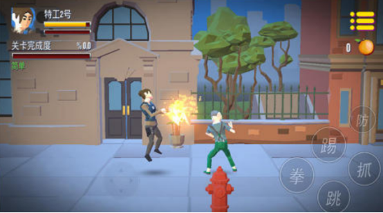 丰富的人物角色都可让大家随意扮演,包括警察或者是特工等等,这些角色适合的场景类型完全不同,不过这一场拳击格斗比赛是发生在繁华的街区,屏幕上都有两方的生命值展现,一边是对方的生命值,而另一边是自己的,在拳击格斗的过程中,还要时刻关注两方的生命值展现,屏幕上还有踢或者是跳等各种控制按键相互配合,直接放倒大招将其带走。