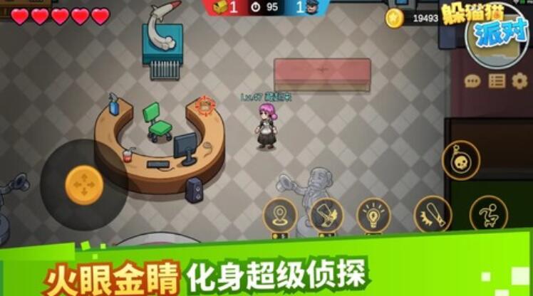 《我爱躲猫猫》拥有搞怪的整蛊角色和可爱的皮肤,虽然是一款躲猫猫类的游戏,但在色彩运用上也做到了极致,虽然采用的是卡通风格,但无论是人物还是动物,在细节方面还原的都相当逼真。手游的核心玩法就是躲避屏幕上方的袭击。除了这一主流玩法外,还有很多其他小游戏,很多猜骰子这个玩法就类似捉迷藏,每次开局后需要玩家躲在指定的骰子内,如果被找到则代表游戏结束。