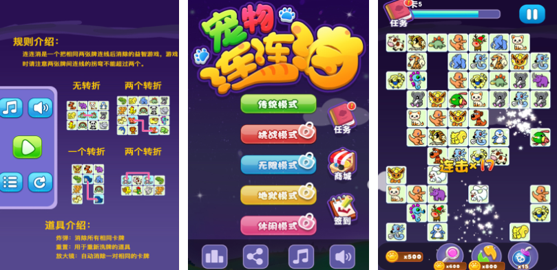 带有宠物主题的连连看消除手游在下只找到这两个,再推荐三个有着流畅操作方式的连连看手游给大家。