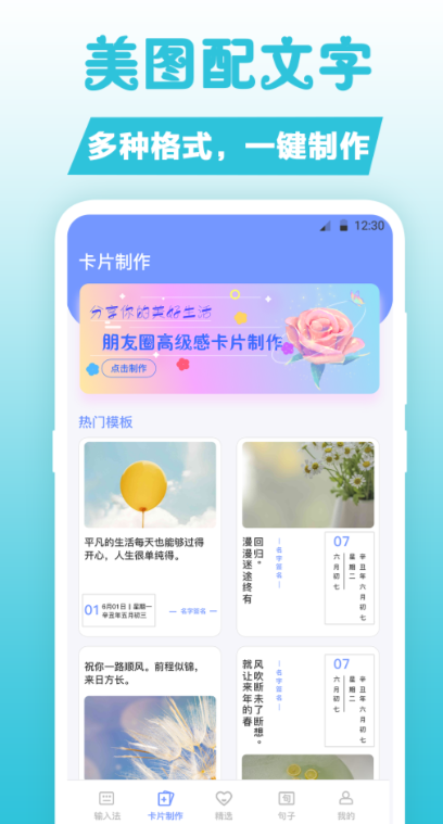 在手机上下载句子这款软件,你可以找到大量精美的诗句,供用户选择使用。不论是为图片还是视频配文案,这款软件都能满足需求。它还会不断更新,提供更多优秀的诗句,包括爱情、励志、搞笑、亲情等各种类型的诗句应有尽有。用户能够根据自己的需求选择最合适的诗句,为自己的创作增添亮点。同时,这款软件还提供了丰富的阅读内容,让你了解更多经典语句,提升写作能力。通过使用这款软件,你可以畅享阅读的乐趣,汲取写作灵感,并将优美的诗句融入到自己的作品之中。不论是在个人创作中,还是在朋友圈分享中,这款软件都能为你提供丰富的文字素材和创作灵感,让你的作品更加出彩。