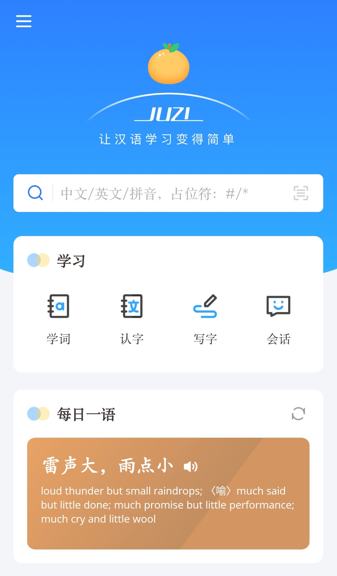 为用户提供了权威、便捷而且非常智能的汉语学习工具,旨在宣扬中华传统文化推动汉语学习。在主要形式上采用的是多种问答方式,既能够学习传统成语又能够练习普通话。目前收录了多达50多万条不同记录,包括很多生僻字,网络词汇,诗词和古文等都可以在这里直接检索到,还能够利用语音、拍照等形式查找,满足不同场景需求。