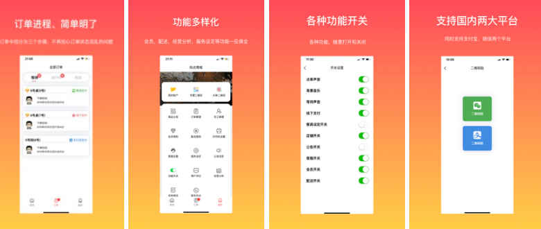 有了这款软件,更便于管理自己的业务,其中包括门店会员功能,对于个别顾客提升成会员,让对方在支付的同时享有会员福利,多种操作一站式满足,方便了不少。软件内置微商城功能,各种不同类型的订单都可轻松操作。
