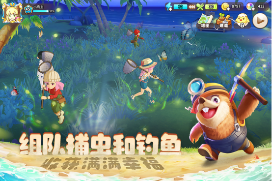 全景3D海岛经营模拟游戏,采用清新明快的低多边形美术风格。玩家作为岛屿管理者,可全视角规划土地用途,种植涵盖30余种作物的农场系统,需执行播种、灌溉、施肥、收获全流程管理;同步拓展餐饮制作、民宿接待等生活化经营模块,构建可持续发展的生态循环体系。