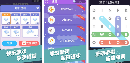 进入游戏后,屏幕显示无序排列的英文字母阵列。玩家须在限定时间内,通过滑动连线方式,从乱序字母中识别并勾勒出隐藏的英文单词。每关设定7个目标词汇,全部正确找出后方可解锁后续更高难度关卡,并累计积分奖励。