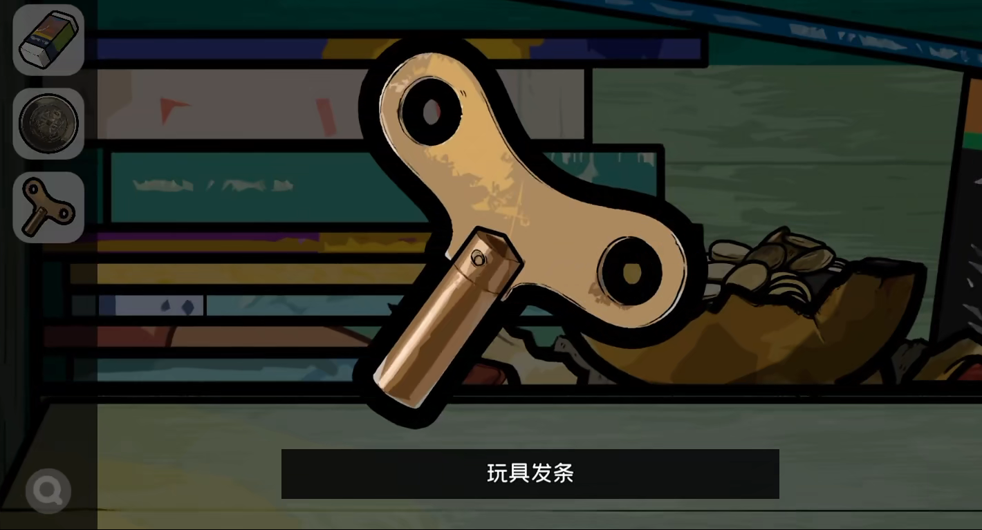 在进入女生宿舍之后先使用碎玻璃照片气球获得一枚硬币,然后在右下角的木盒子上触发机关,通过小游戏之后就可以获得一个耳机,在孟小冬的桌子下面拿到一把锤子将抽屉里面的小猪存钱罐砸碎获得一个发条,然后把发条装在最左边桌子上的小玩具获得信息。