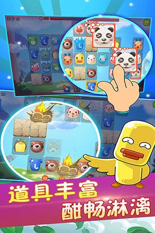 游戏内设有超过百个精心设计的关卡,每一关都融入了不同的策略元素,确保玩家在享受消除乐趣的同时,也能体验到深度的游戏内容。游戏中的主角是一系列萌态可掬的小动物,如活泼的小喵、憨厚的小熊等,它们不仅为游戏增添了视觉上的愉悦,还通过多样化的造型设计,提升了游戏的互动性和趣味性。玩家需要运用智慧与技巧,合理利用游戏提供的各类道具,如炸弹、闪电等,以突破更具挑战性的关卡。