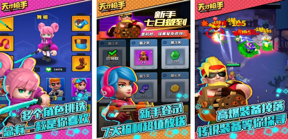 《天才枪手》将当下热门的枪战题材以及动作模式相结合,同时又具有了一定的休闲性,玩家的主要玩法就是使用枪支来与僵尸进行对决。手游内共有多个角色可以选择,高爆率的装备掉落,也能让新手玩家轻松获得橙武。独特的单手走位设计方式,搭配上策略玩法,也可以让玩家使劲快速清怪。新手玩家现在下载登录的话还会有7天的超值福利赠送。