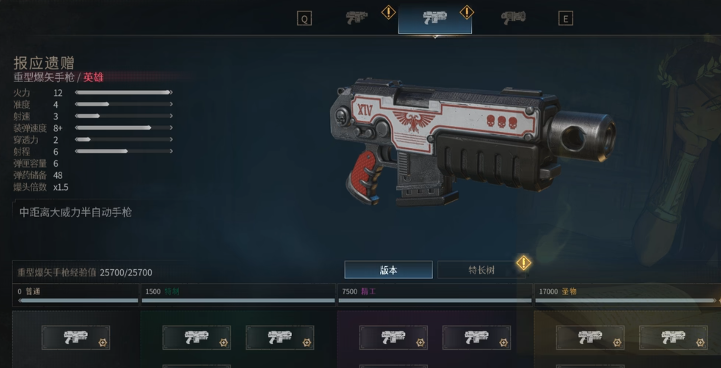 • 报应遗赠(重型爆矢手枪):对精英及以上目标完成击杀后,自动触发“审判余烬”效果,使下一次远程射击伤害提升18%,持续8秒;
