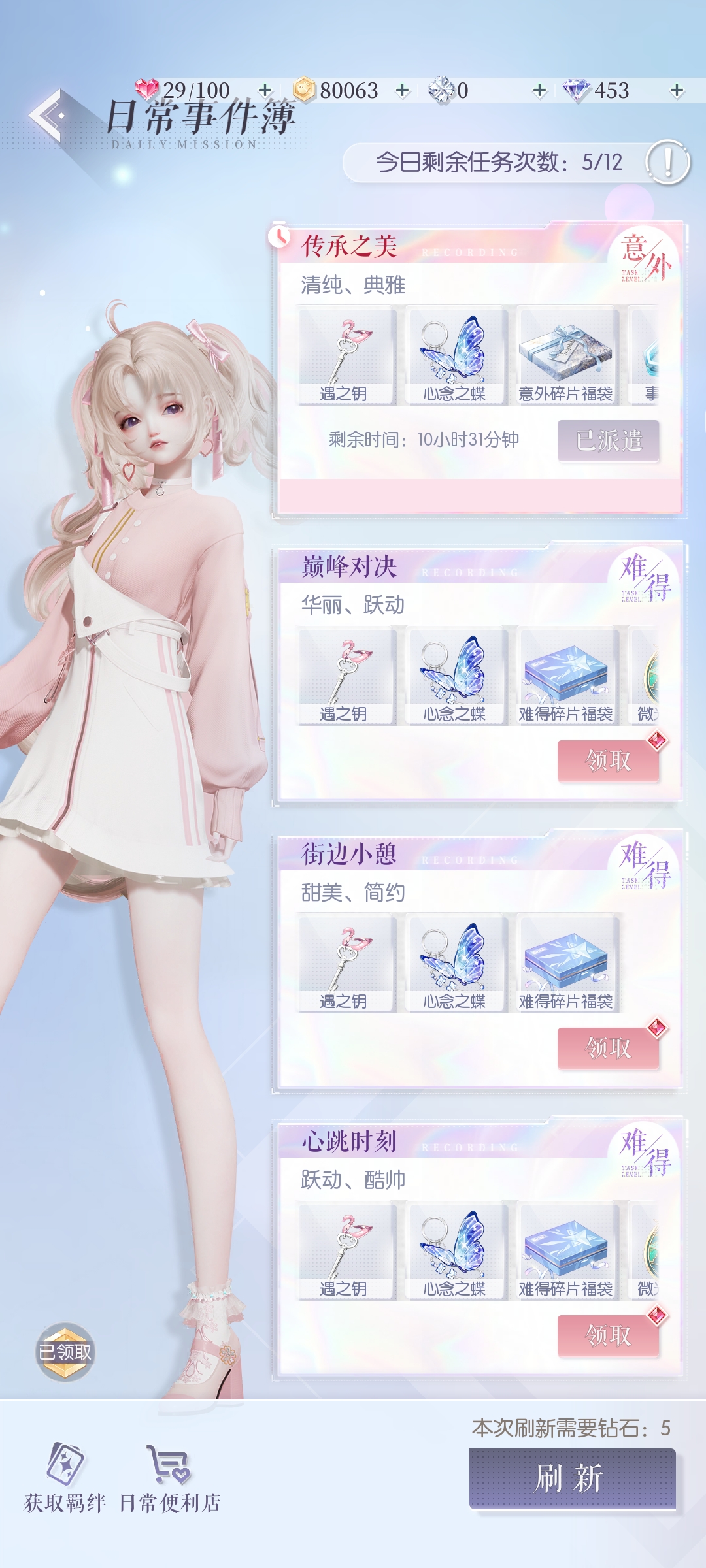首先是最简单的主线玩法,这个主要是点开游戏内的“主线之旅”,然后找到我们要挑战的关卡,并按照关卡内给的提示换上相对应的服饰并进行通关,通关之后可以获得大量资源,日常事件簿,这个各位一定要记得做,因为这里不仅可以获得羁绊卡升级的资源,还可以获取羁绊卡碎片以及各类资源,还有时尚对决,也叫做竞技场,每天都有三次获得钻石,所以小伙伴们要记得每天至少要挑战三次,而且竞技场商店的服装是6星的,非常值得挑战。