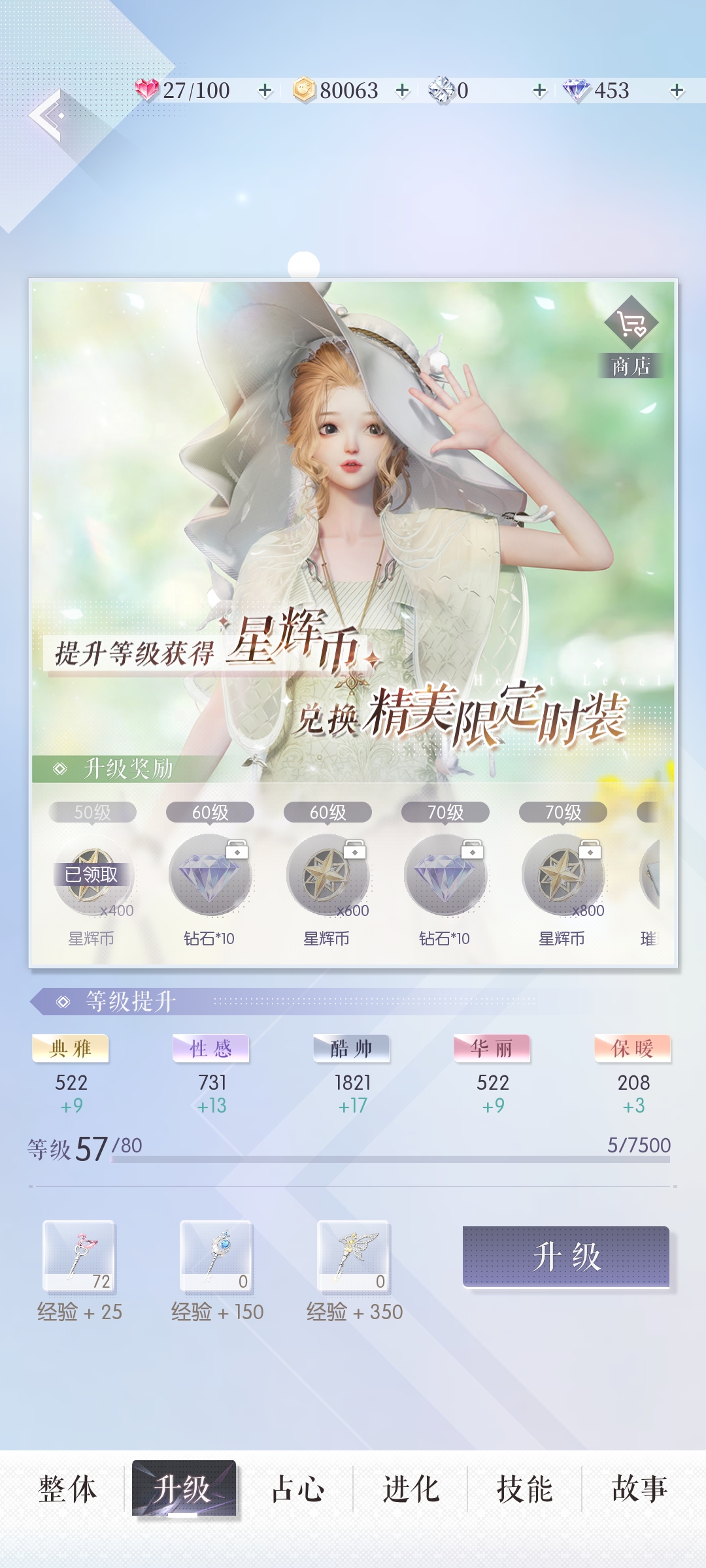 接下来是羁绊卡的养成,要知道这款游戏内,我们在挑战时的评分,除了对应风格属性的服饰以外,羁绊卡的作用也是不容小觑的,我们要在主界面的“羁绊”里知道要培养的羁绊卡,然后点击进行进化等操作,升级所获得的星辉币还可以让我们在羁绊商店内购买套装以及色卡等材料。