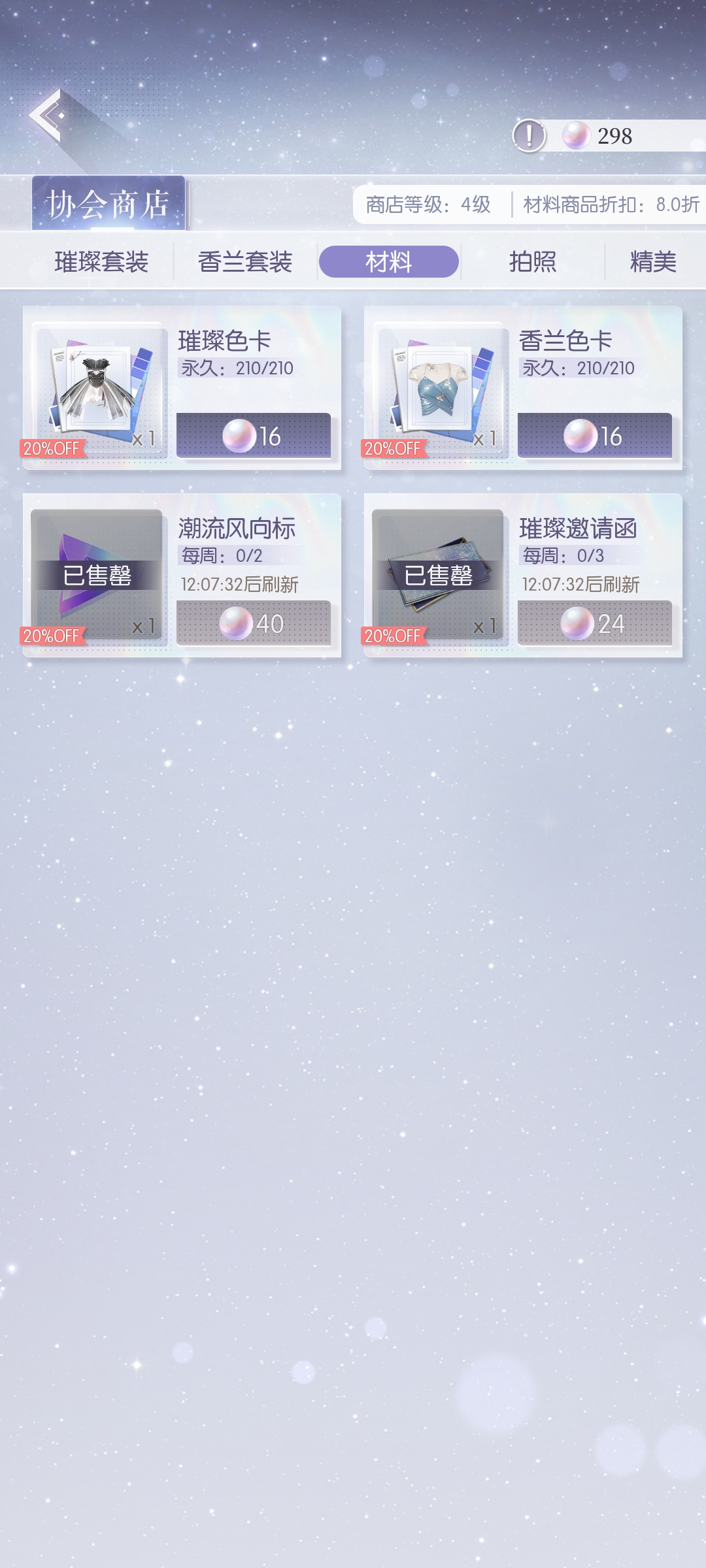 说到协会,里面每次三次的应援和灵感碰撞的必做的,然后将做这些任务获得的积分,在协会商店找到“璀璨邀请函”,并将能购买的全部购买,这可以让我们在卡池内进行招募,并且协会内的“专属美妆课程”可以让我们提升风格属性,在会员积分和金币足够的情况下一定要点。