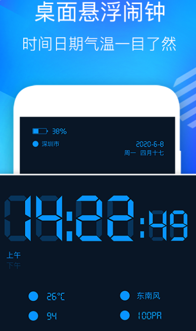 有醒目的电子时钟提醒,简单不简洁的数字时钟软件极简设计,无论放在房间哪个角度都能够快速查看时间,还能够制定时钟样式以及颜色,多种不同的模式都可随意选择有滑动式,闹钟方便又快捷,还有针点报时器,小时语音提醒,轻松报告时间。尺子、镜子、水平仪等各种小工具都全面上线等待用户来提。
