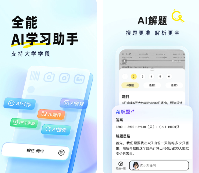 它支持大学学段的多专业作业,不仅能搜题,还能快速匹配各类教材、练习册的答案。加入AI学习解题,在完成作业、核对答案时,使用它能大大提高效率,节省时间。
