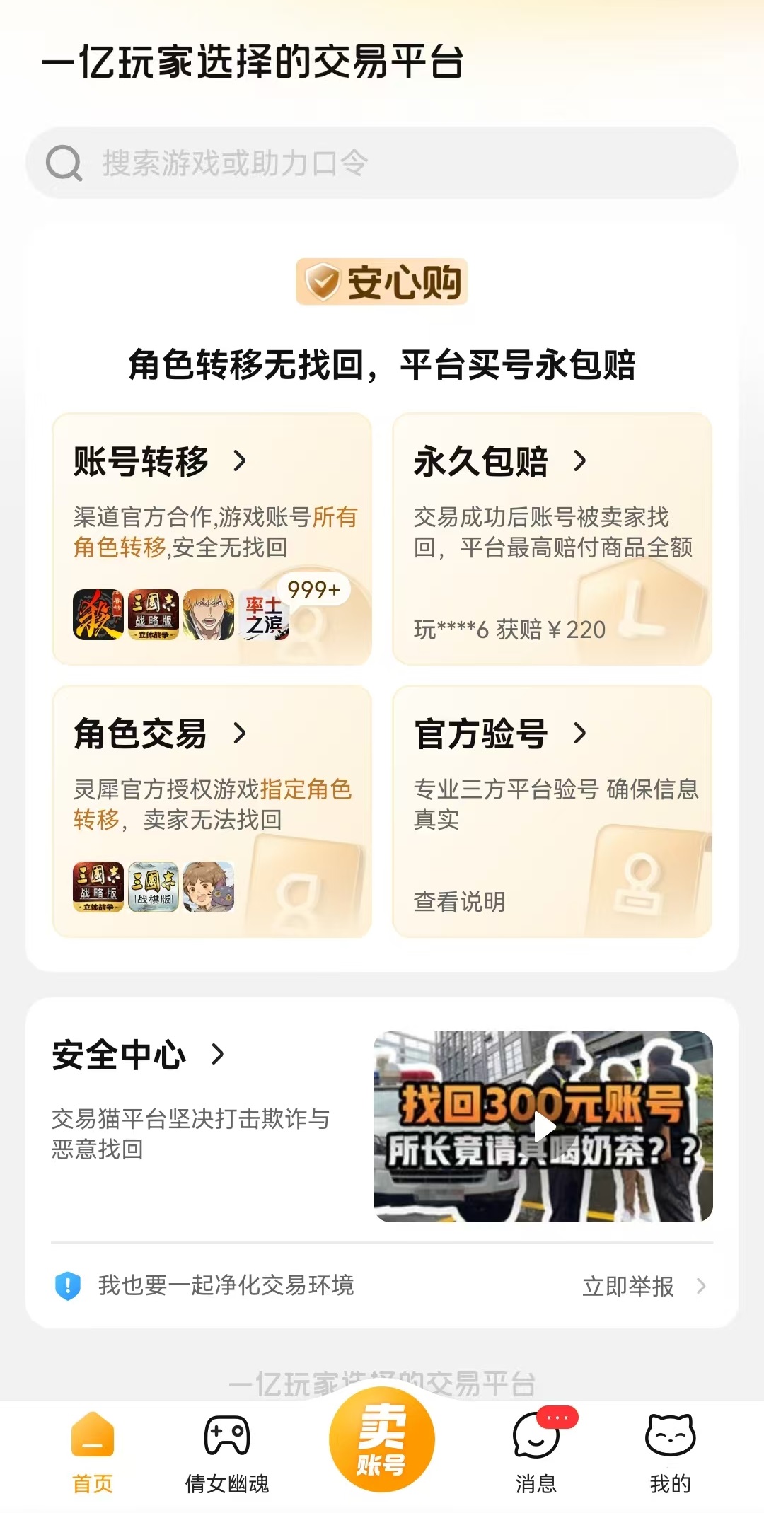 平台在用户体验层面持续优化:各游戏专区均配备结构化筛选模板,支持按等级、战力、充值金额、角色名称、服务器等关键数值维度快速过滤。用户仅需几步点击即可锁定目标账号,再横向比对价格与配置,决策效率显著提升。在安全保障方面,交易猫提供永久包赔服务,涵盖因账号被盗、被恶意找回导致的资金损失;同时执行官方验号机制,确保所售账号状态真实、绑定信息完整、无异常登录记录;另设诚信卖家评级体系,从源头强化交易可信度。多重风控叠加,有效压缩交易不确定性。