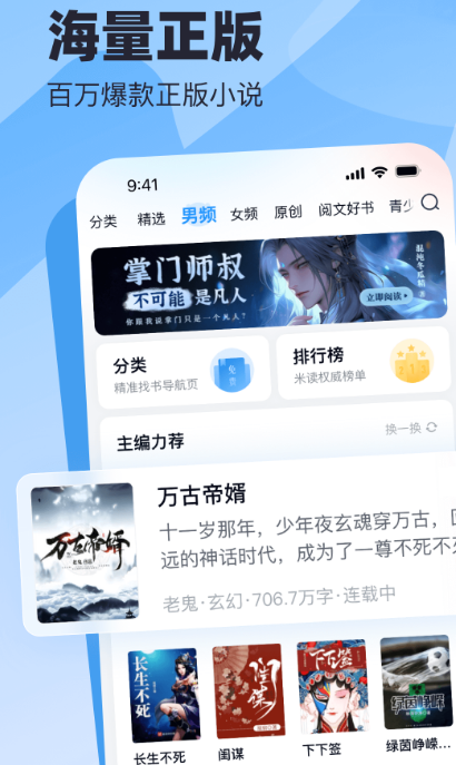 应用当中主打的就是免费可看高清又正版的小说内容,涵盖诸多的作品,其中的正版小说当中既有都市风格,也有玄幻、言情等,不管是男生还是女生喜欢的作品,都可根据专属的频道进行搜索。凡人修仙传这一部小说主要是一部以玄幻色彩为主的比较,喜欢看的话,可在相应的分类榜单当中来选择,也可利用搜索的功能,让自己拥有更好的追书体验。
