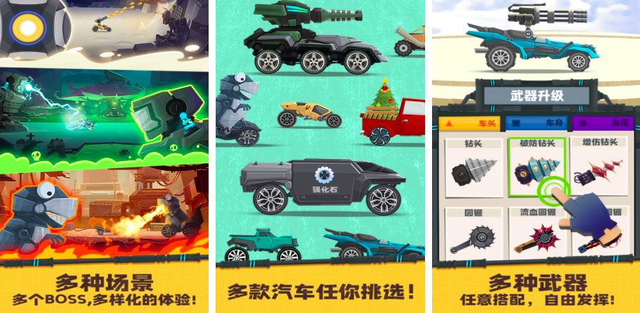 想跳脱传统模式的赛车竞技吗?那么快来解锁飞车总动员吧,不行,有丰富多样的汽车造型,玩家可自由挑选,还有非常多的战斗场景,多个boss玩家可以一并挑战。紧张刺激的,因为1V1排名对抗大赛,感受更多热血瞬间,武器库当中的装备达到100+,在线可实现更加自由的搭配模式,打造你的专武。