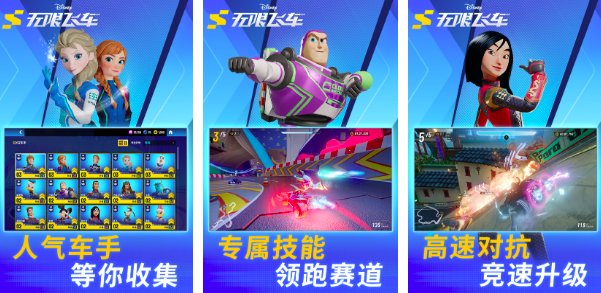 将迪士尼经典角色和赛车玩法进行趣味结合,将迪士尼经典角色和赛车玩法进行趣味结合。熟悉的迪士尼英雄投入到这场终极赛车战斗当中,就连赛车场地也极具皮克斯风格,玩家可以自由选择人气车手,如艾米、唐老鸭等等,在线秀出自己的花式漂移、闪耀全场,丰富多样的竞技PK模式,在线与好友展开热血对决。