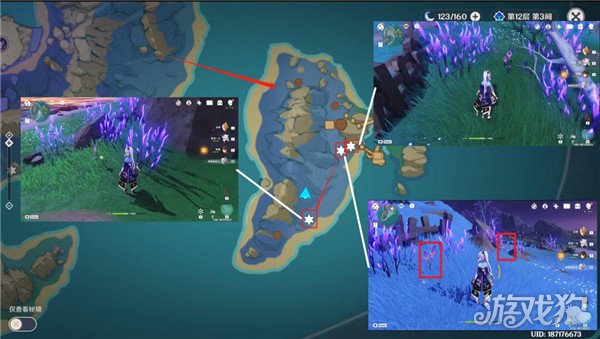 说明:从西部朝东方向游泳到小岛上,注意此处有很多怪物,建议先清理再采集!