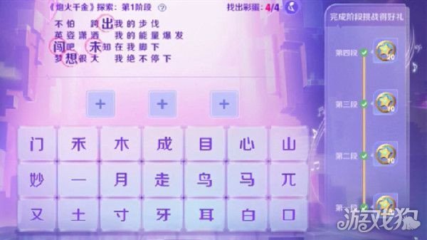 ② 每段歌词设有3~4个文字彩蛋,拼组成功该段落所有彩蛋文字,即通过该关卡。