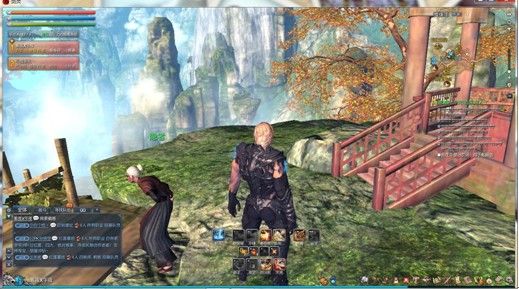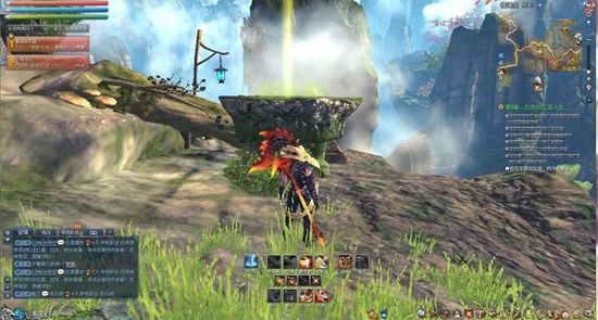 任务NPC就在我旁边,玩家们看到我这个位置对面有个悬浮的平台,任务的第二个NPC在上面,任务会让你用刚学的轻功飞过去,要注意,一定要在这个平台上起飞,不然~(我不知道的时候,在这浪费了40分钟~)