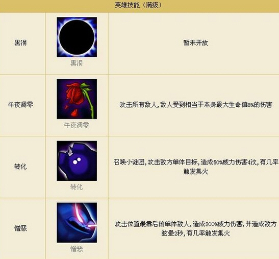 对于这个英雄,感到万分遗憾,TX的暗改,不能让人理解啊,不过在减速流和眩晕流里面他还是有地位的,劝玩家们不要放弃。