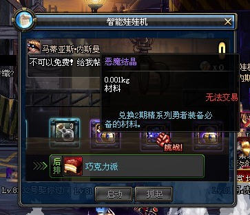 DNF85级版本智能娃娃机简单扫盲,娃娃机需要3个无尽的永恒兑换一个智能娃娃机硬币,至于能抓到什么东西则需要看人品,玩家们不用抱非抓到好东西的心态,偶尔玩玩还是挺不错的。