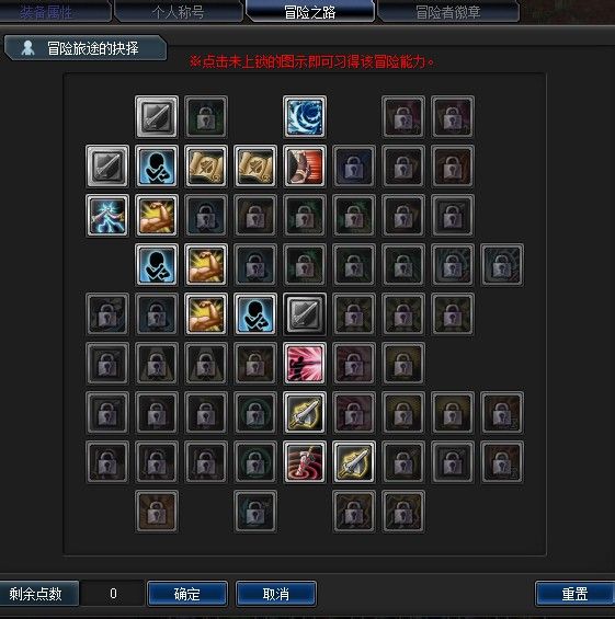 冒险之路 属于增加固定属性,被动技能和必杀技能的一个天赋盘,需要激活一个格子后格子的4周才可以继续激活,本人不才 只能到52级不能把完整的天赋选择发给玩家们不好意思了。说到必杀技能,开启的条件是40级后按照游戏指引你会获得一个选择副手武器的任务,每种副手武器获得的必杀路径也不同 这个我就不妨碍玩家们兴趣的搭配了。 本人副手双刀 附上冒险之路仅供参考
