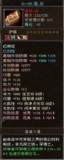 基础属性:有基础内外攻击、基础闪避、基础命中、基础内外功防御等,可以通过强化和刻铭的方式来提升装备的基础属性。