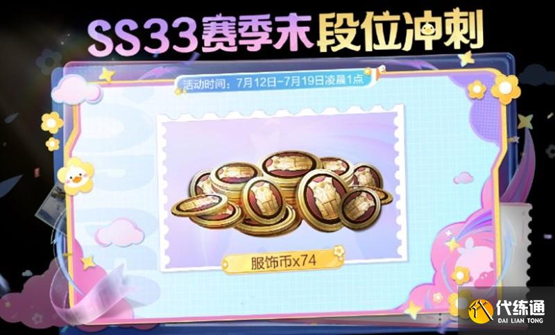 7月12日-7月19日凌晨1点,SS33赛季末段位冲刺开启,达到指定段位最多可领34个服饰币,巅峰赛达到指定战力最多可领34个服饰币,订阅新赛季提醒,还送6个服饰币,共计可领74个服饰币!