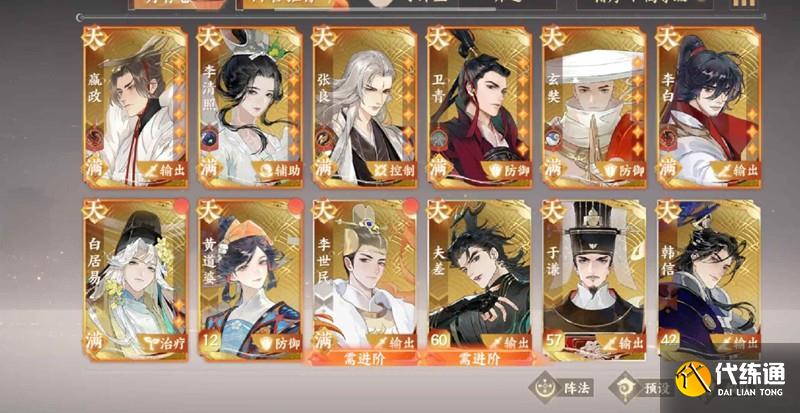 2.李煜:可以和张良打双控制,单挂效果显著,后续如果抽到赵大或者陆游可以组成天命进入李白的队伍。