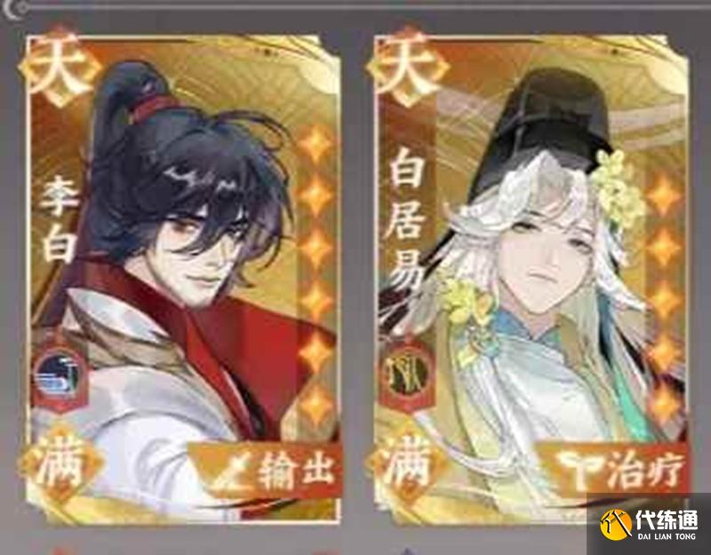 当你三个满星是,张良,李白,白居易。这时候就可以以双白为核心搭配阵容。这时候就如果你有以下几个角色就推荐你拉一下了。